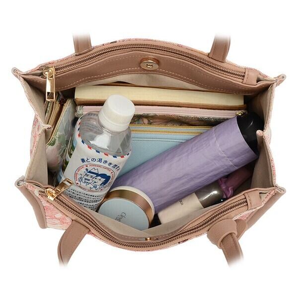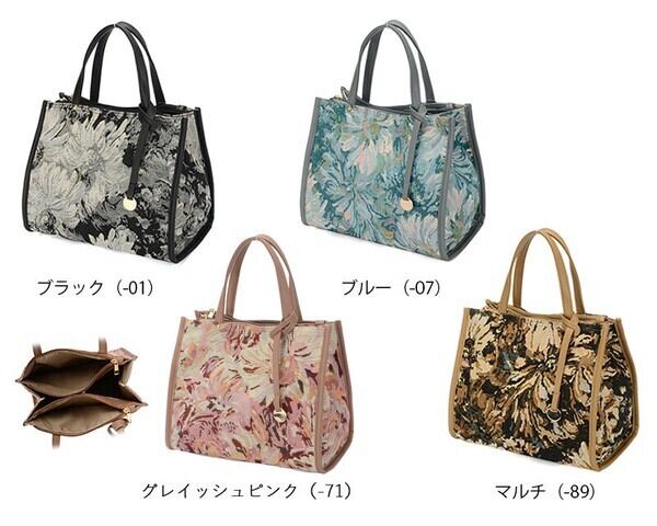 油絵風のジャガード織の生地が目を惹くハンドバッグです。