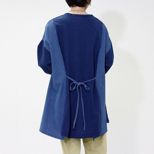 【インディゴ裏毛 後ろリボンビッグプルオーバー】