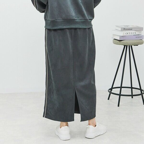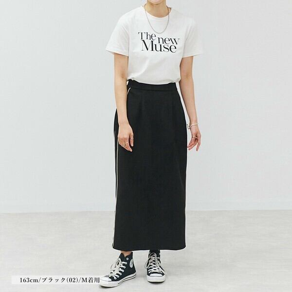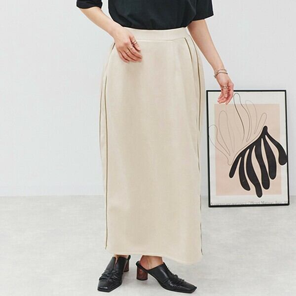 サイドラインがトレンド感たっぷりのロングスカートは、Iラインシルエットで大人っぽく仕上がります。