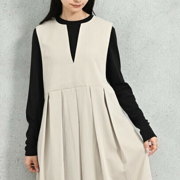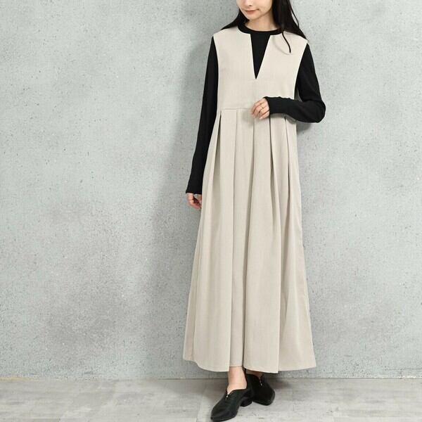 ・TR素材ならではのきれいな表面感と落ち感で、大人っぽく着られるジャンパースカート