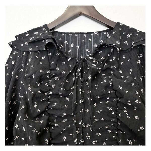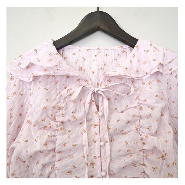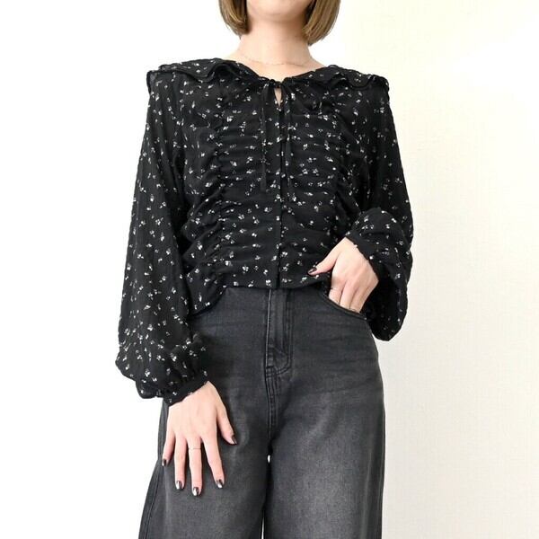 ※シャーリング 小花柄プリント フリルカラー ブラウス☆
