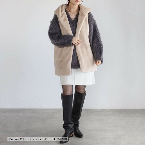 ずっと触れていたくなるほどふわふわな触り心地のフェイクファー。ボリューミーで高級感のある見た目です。裏地はツヤ感のあるポリタフタでスムーズに着用可能。