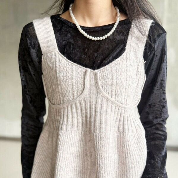 \フェミニンとモードな要素をプラスしたニットビスチェ/