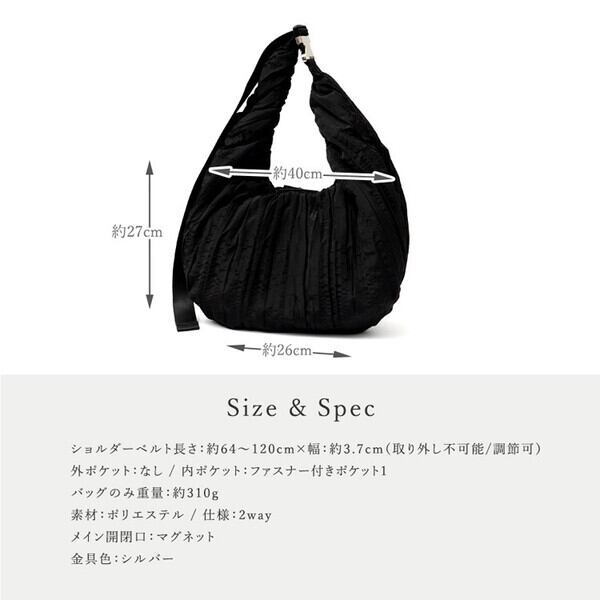 独特なクロワッサン型のプリーツデザインが魅力のこのショルダーバッグは、シンプルでありながらも個性を引き立てる存在感があります。斜め掛けスタイルで両手が自由になり、日常使いに非常に便利です。柔らかな素材が優しい印象を与え、カジュアルからきれいめスタイルまで幅広く対応可能です。調節可能なショルダーベルトにより、自分のスタイルに合わせて持ち運びができるのも嬉しいポイントです!内部には便利なポケットを完備し、小物の整理も楽に行えます。