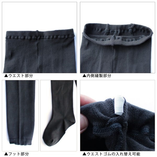 おなかまですっぽり覆うタイツ仕様なので、体全体の冷え対策にも◎