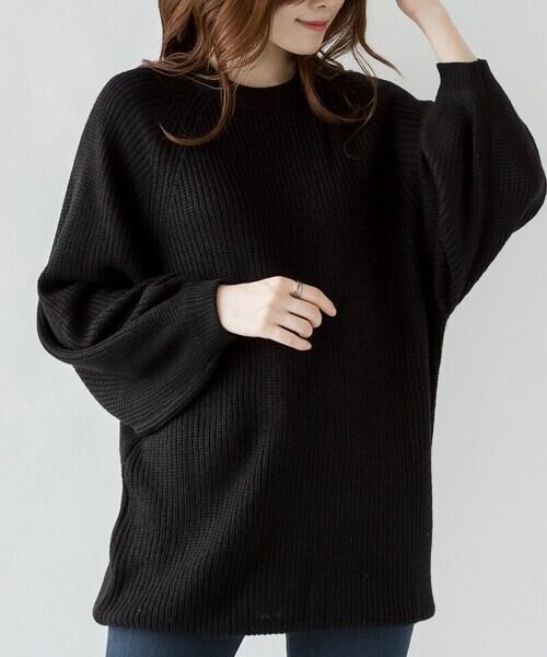 ふんわりとした女性らしい柔らかさを引き出してくれるバルーン袖ゆるニット