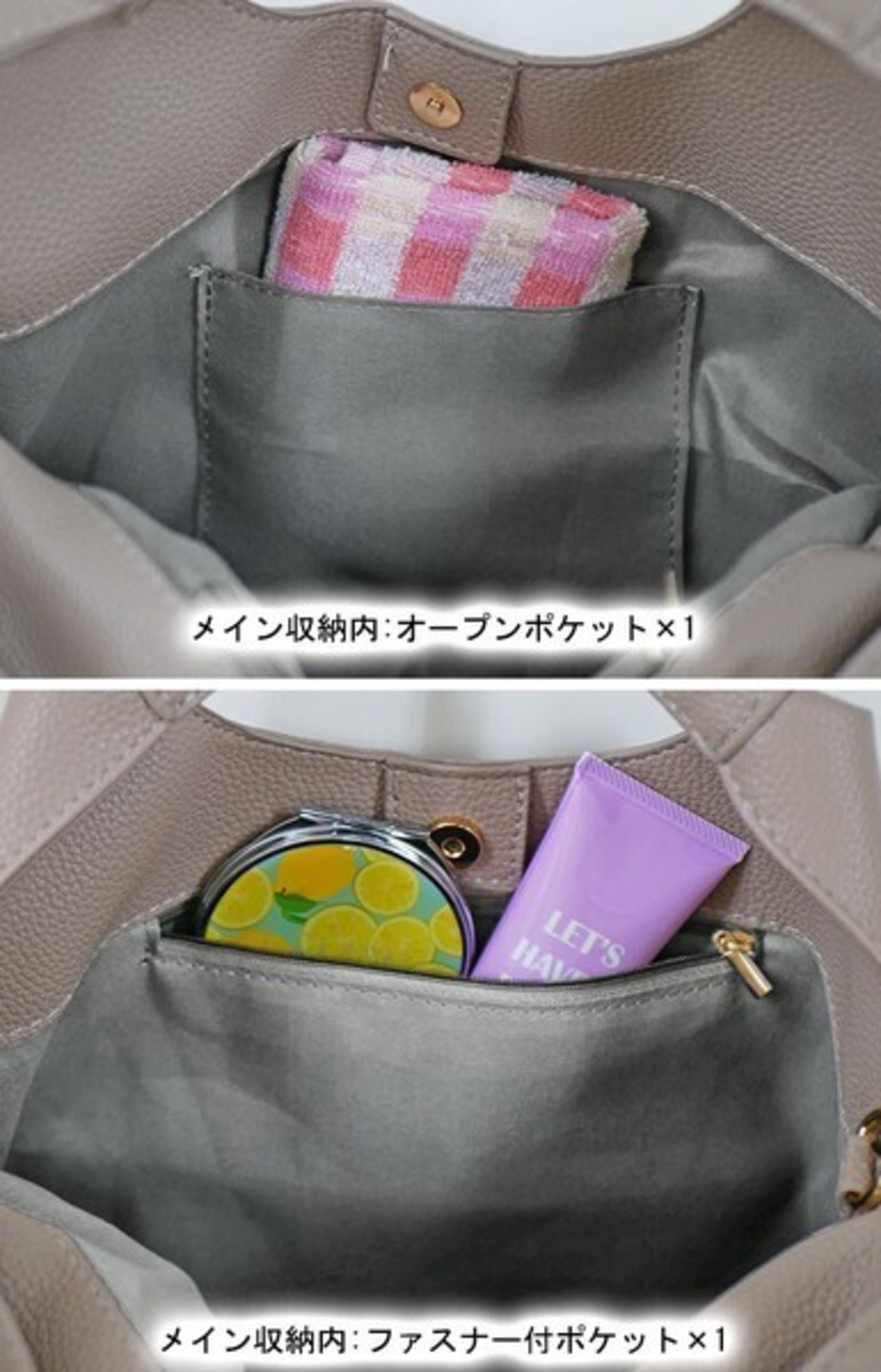 【ポケット数】メイン×1(内:オープンポケット×1,ファスナーポケット×1)