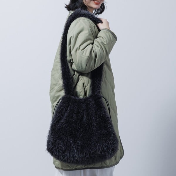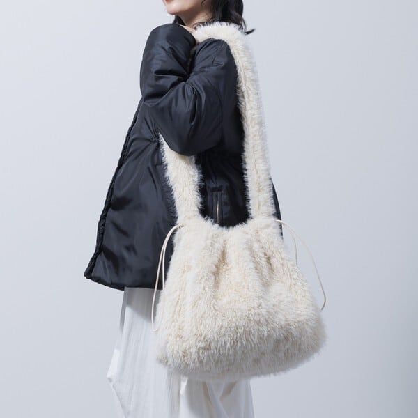 肌触りの良いファー生地でコロンとしたフォルムが特徴的なアイテム。