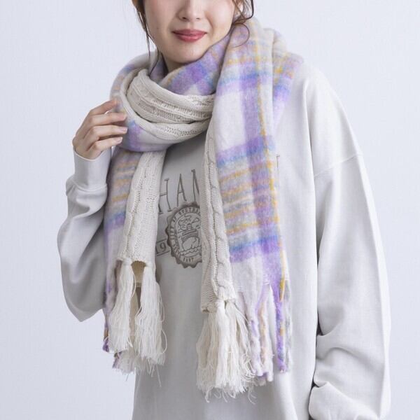 同じになりがちなマフラーにひと癖加えた、他と被りにくいアクセントポイントに。