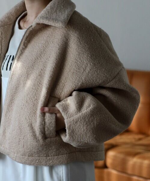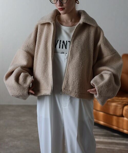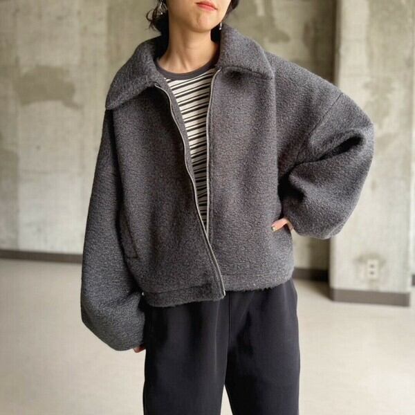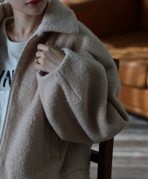 くるくるとした毛質が特徴のシープボア素材を使用したトレンドのショートジャケット。