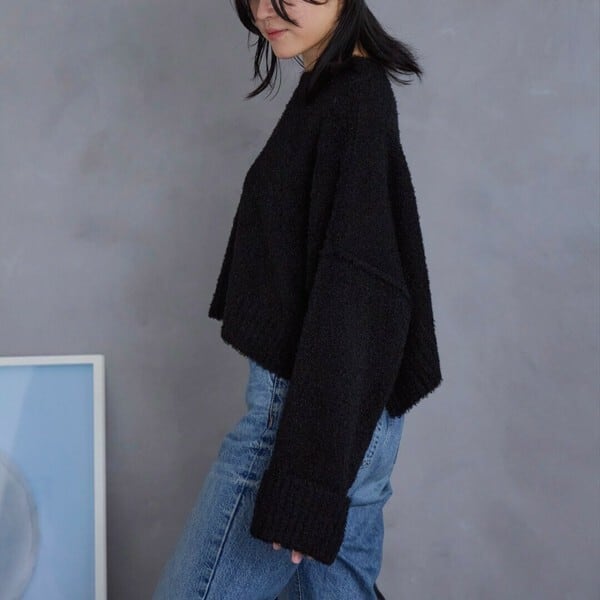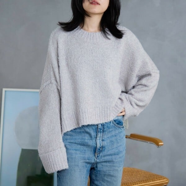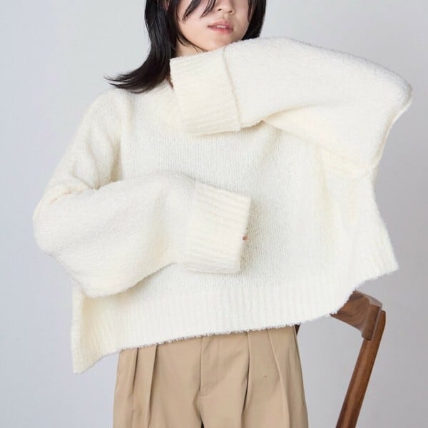 ふんわりとしたブークレ素材が、季節感を演出してくれるショート丈ニット。