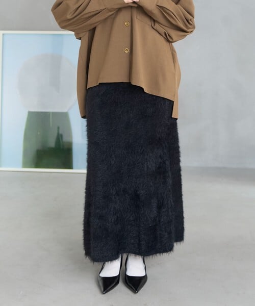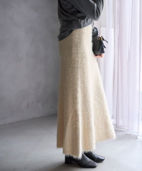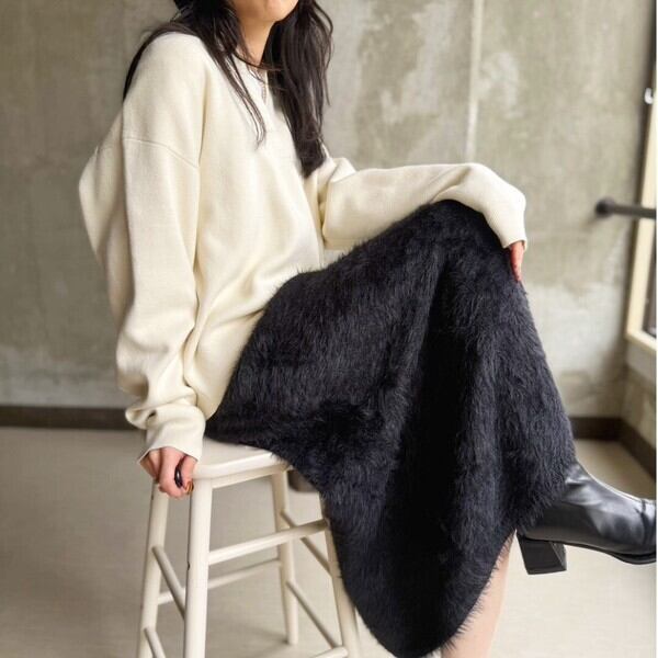 ふんわりとやわらかな質感が魅力的なシャギーニットスカート。