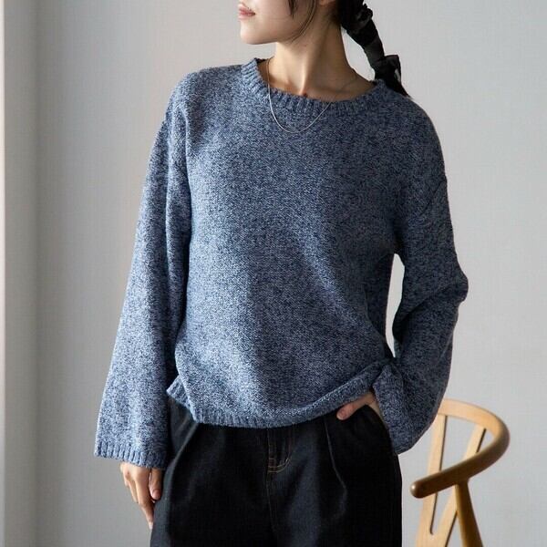 リサイクルポリエステルを使用したメランジ調のニットプルオーバー。