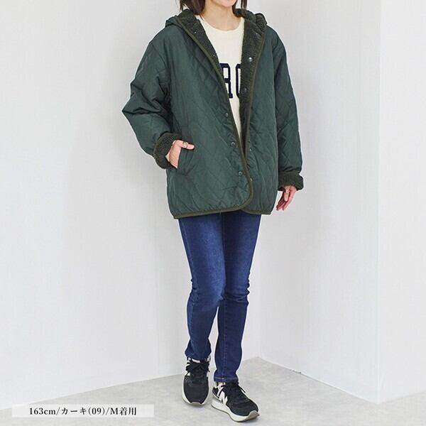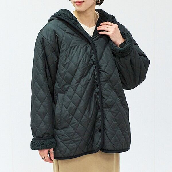 【リバーシブル フード付きキルティング×ボアジャケット】